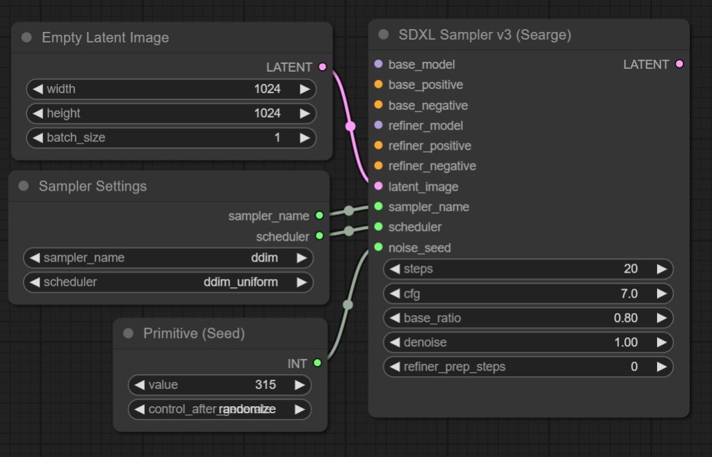 I like to create a “Primitive” node for the seed so I can use it for other samplers I have in my workflows at the same time to share a common seed value. This also works with the Sampler Settings node seen above.